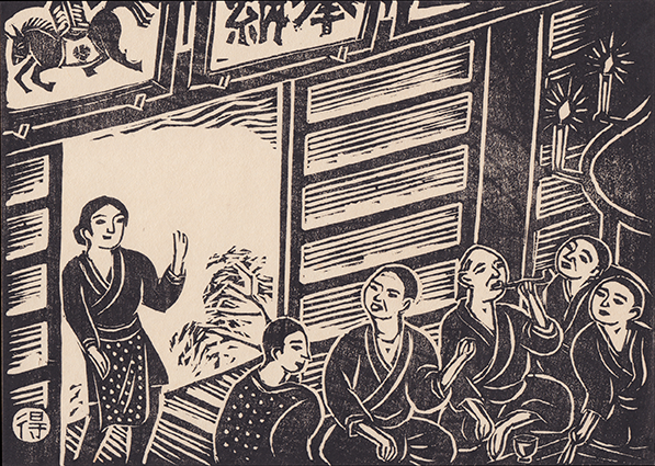 Katsuhira Tokushi (1904-1971) was born into a family of farmers. He began as a doll carver, then took up print making after participating in a woodblock carving class in 1928. He is considered both a Sosaku Hanga artist and a representative of the Farmers Art Movement. Katushira produced several themed print series depicting rural life and customs, often in winter settings. Katsushira also produced a number of sets depicting the print making process, two which can be viewed in Gallery 1, as well as woodblock printed postcards, some of which can be found in Gallery 9.