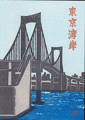 Prints from Multi-color Woodblock Print Collection No. 66. Tokyo Skytree 2011. Published December 7, 2011. No. 39 0f 80 copies. The main subject of this travelogue, the Tokyo Skytree, was still being constructed at the time of publication.