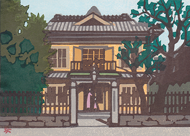 A Villa with a View of Hakkeijima (Nojima Park). 13.8 x 9.8 cm