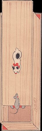 The following senjafuda are all associated with images of rats and were presumably created to celebrate the year of the rat. The artists have yet to be idenified. Two images that originally came from this group bare the seal or signature of Hasegawa Sadanobu III and can be found in this gallery with other works by the artist.