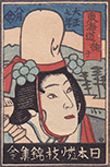 The miniature woodblock prints in this gallery were designed as matchbox labels. The collecting of matchbox labels, like the collection of other ephemera in Japan, became popular shortly after their introduction in the late 1800s. In 1903, the Japanese Association of Matchbox Label Collectors was established. The majority of the labels in this collection are affixed within two collector’s books or are from another large collection that was not presented in a book format,These date from the 1920s or 1930s. Others derive from smaller sets designed around specific themes (e.g. women, historical events). These prints represent some of the smallest of Japanese miniatures. The most elaborate of these labels are a testimony to the amazing skill of the carvers and printers who produced them.