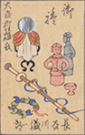 This set of matchbox prints illustrates the seven lucky gods (shichi fukujin).