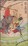 The following set of 24 matchbox prints depict different aspects of the story Chūshingura (The Treasury of Loyal Retainers) which recounts an episode at the begininng of the eighteenth century in which forty seven-ronin (samaria without a lord or master) avenged the death of their master, Asano Naganori. The story has been told in multiple formats including kabuki, bunraku, novels, film, and television. Most of these prints refer to specific scenes for the play although several also depict ronin who play minor parts in the stage production.