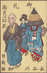 The matchbox prints in this section all come from a book related to a matchbox print exchange that occurred in 1933. The cover indicates this was the 15th exchange for the group. Many of the matchbox prints represent small series based on a theme such as kabuki, travel, toys, a honeymoon, etc. Since these appear in a single exchange book, we have chosen to keep all of these sets in this section rather than relocate them to the galleries specifically focused on one genre such as travel or theater.