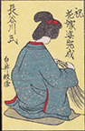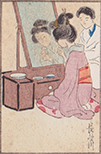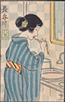 This set of 42 images of Bijin-ga (Beautiful Woman prints) was reportedly printed in the 1920s. The images appear to be adaptations of various elements of works by the artist Kitagawa Utamaro (c. 1753 – 1806). Images (without margins) are approximately 3.3 x 5.1 cm in size.