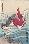 The folllowing are matchbox process sets demonstrating the progressive addition of colors during the woodblock printing process. These sets were distributed at the 1930 Matsuzakaya Exhibition (Osaka University) of Matchbox prints. The disigns depict elements from Utamaro’s woodblock prints of albone Divers. The sets appear to include a second copy of the final image.