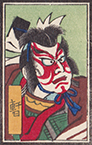The following matchbox woodblock prints accompanied the above set of 18 and include 5 Kumadori (makeup) images as well as three prints that may be title pages for the sets.